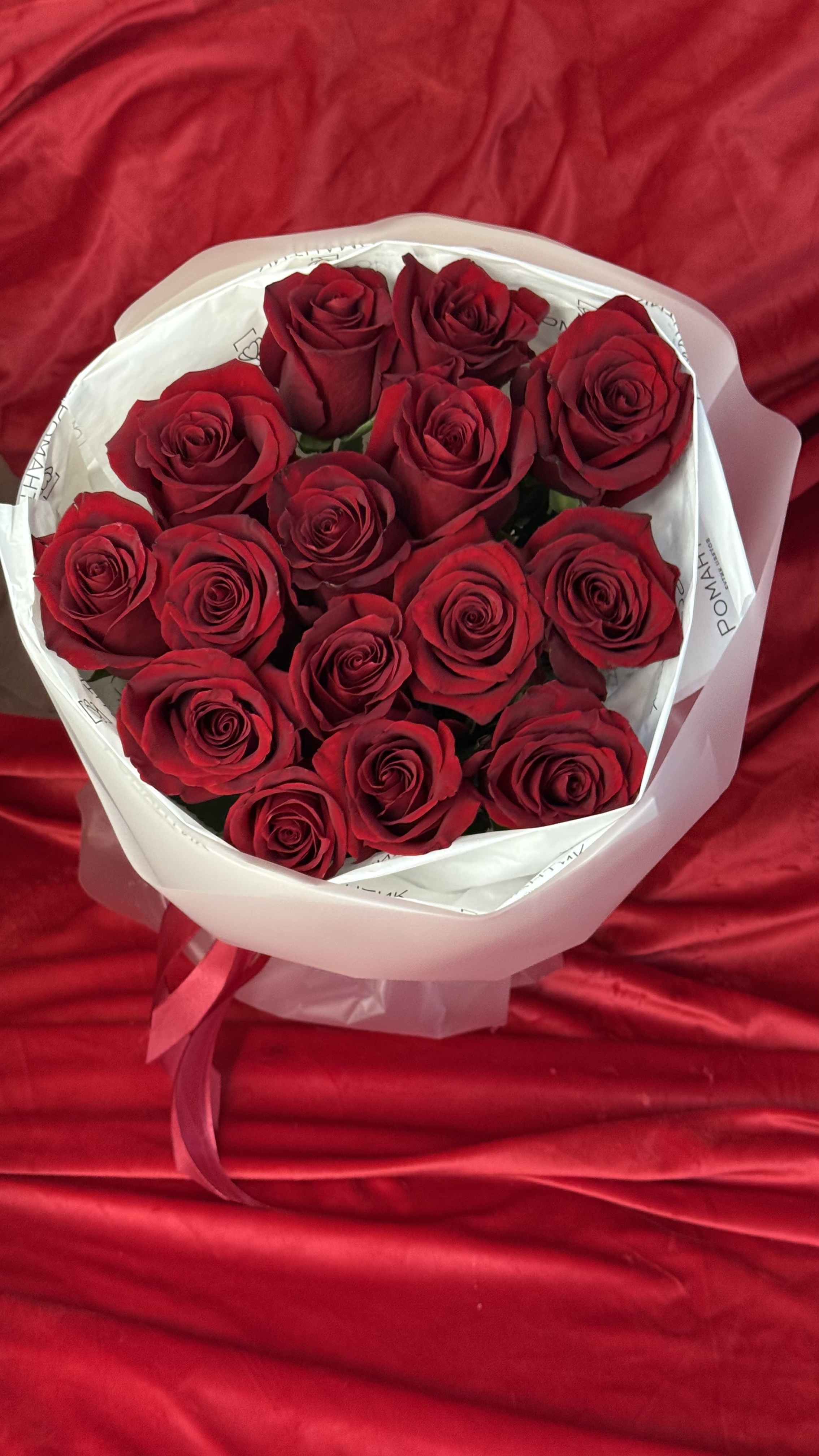 15 эквадорских роз премиального качества. Красные оттенки роз подходят для признания в любви.