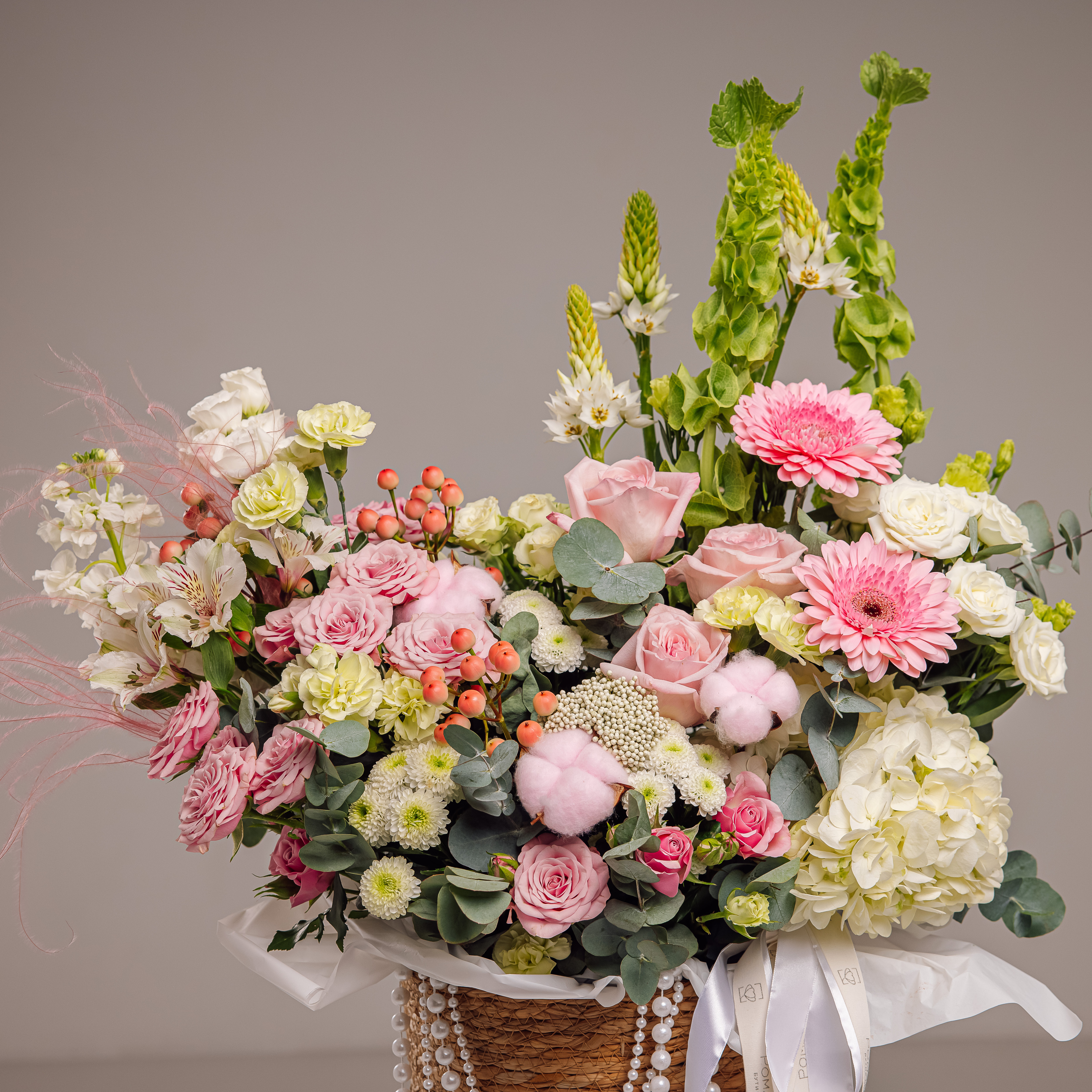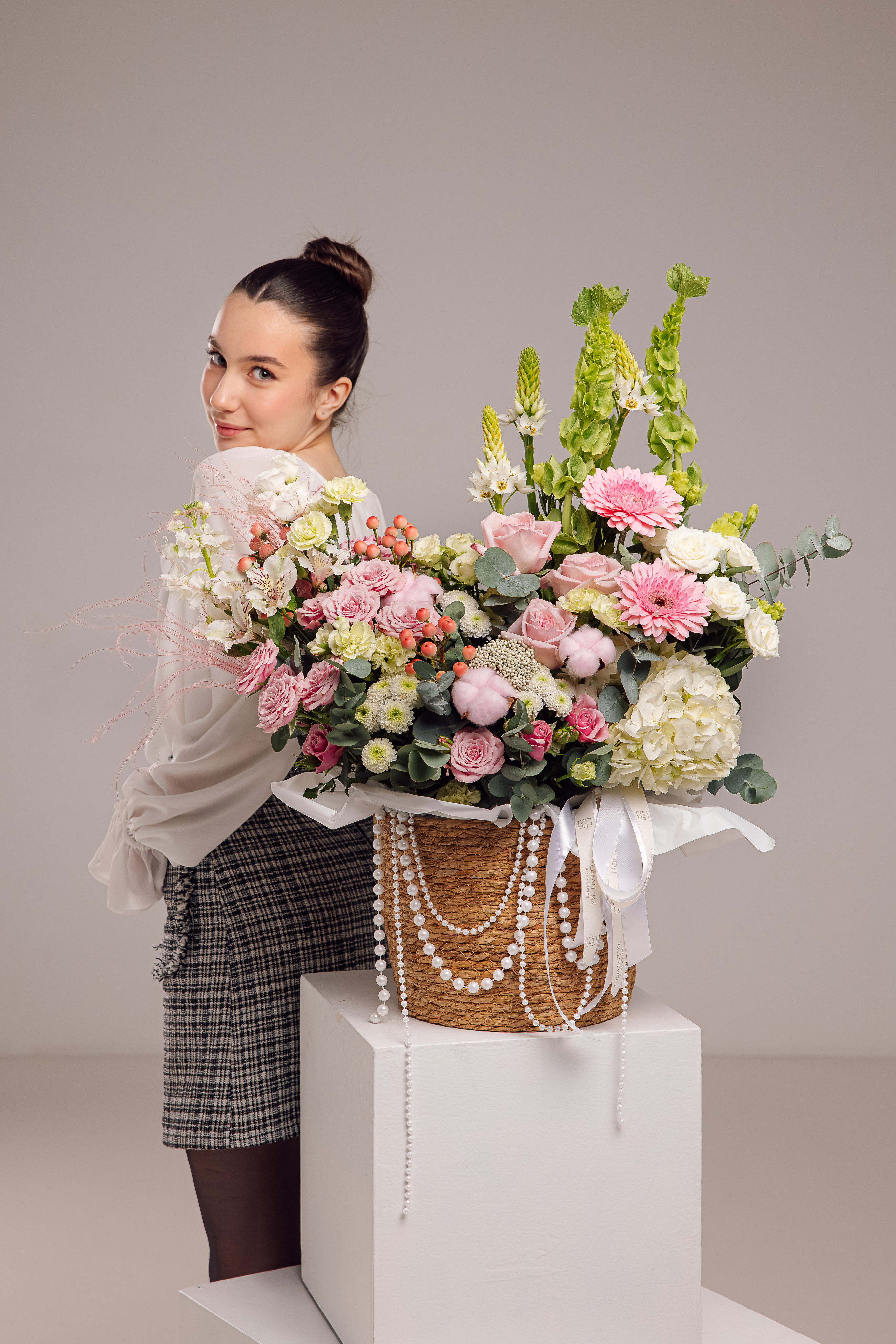 Сборная композиция в плетеном кашпо покоряет с первого взгляда!