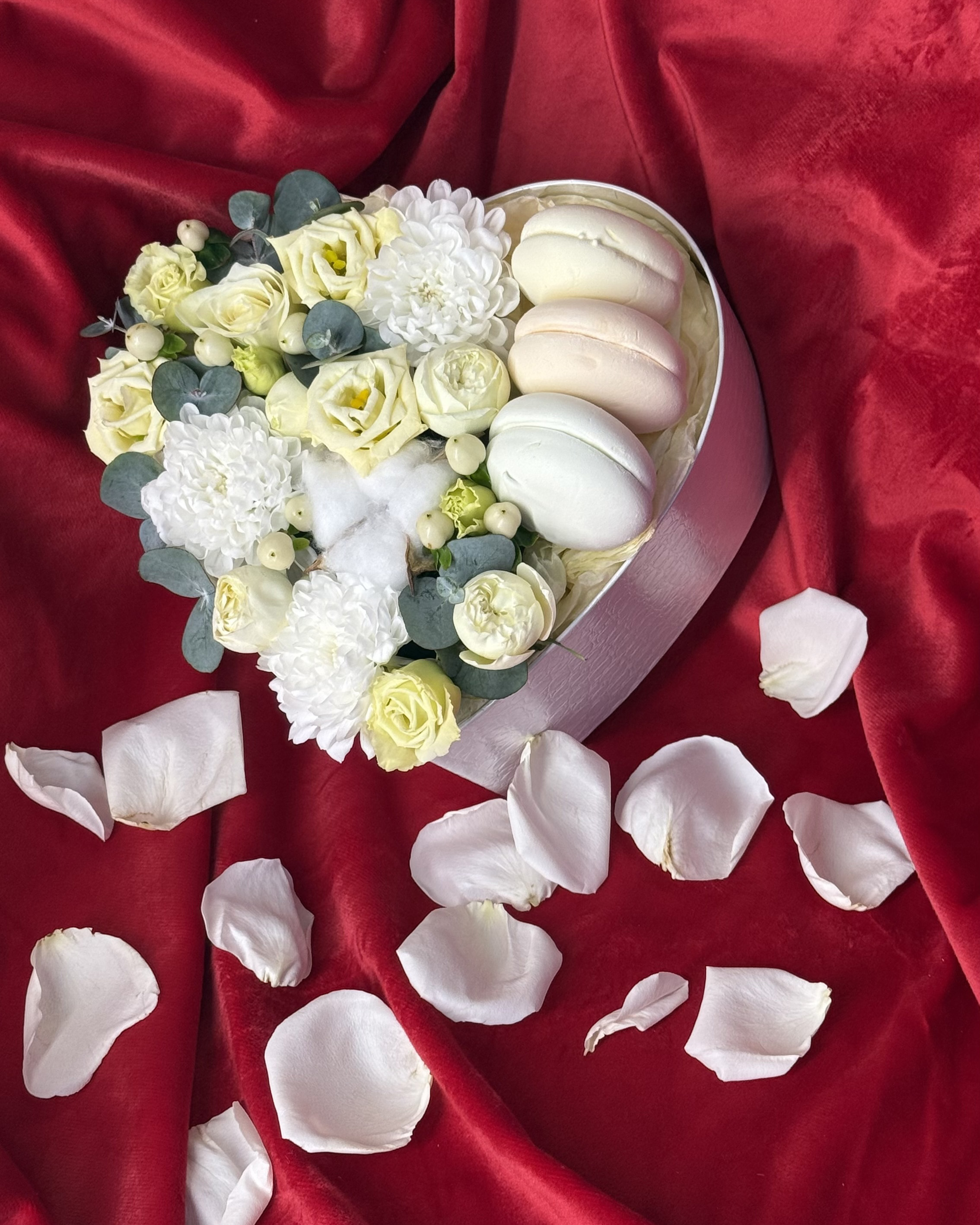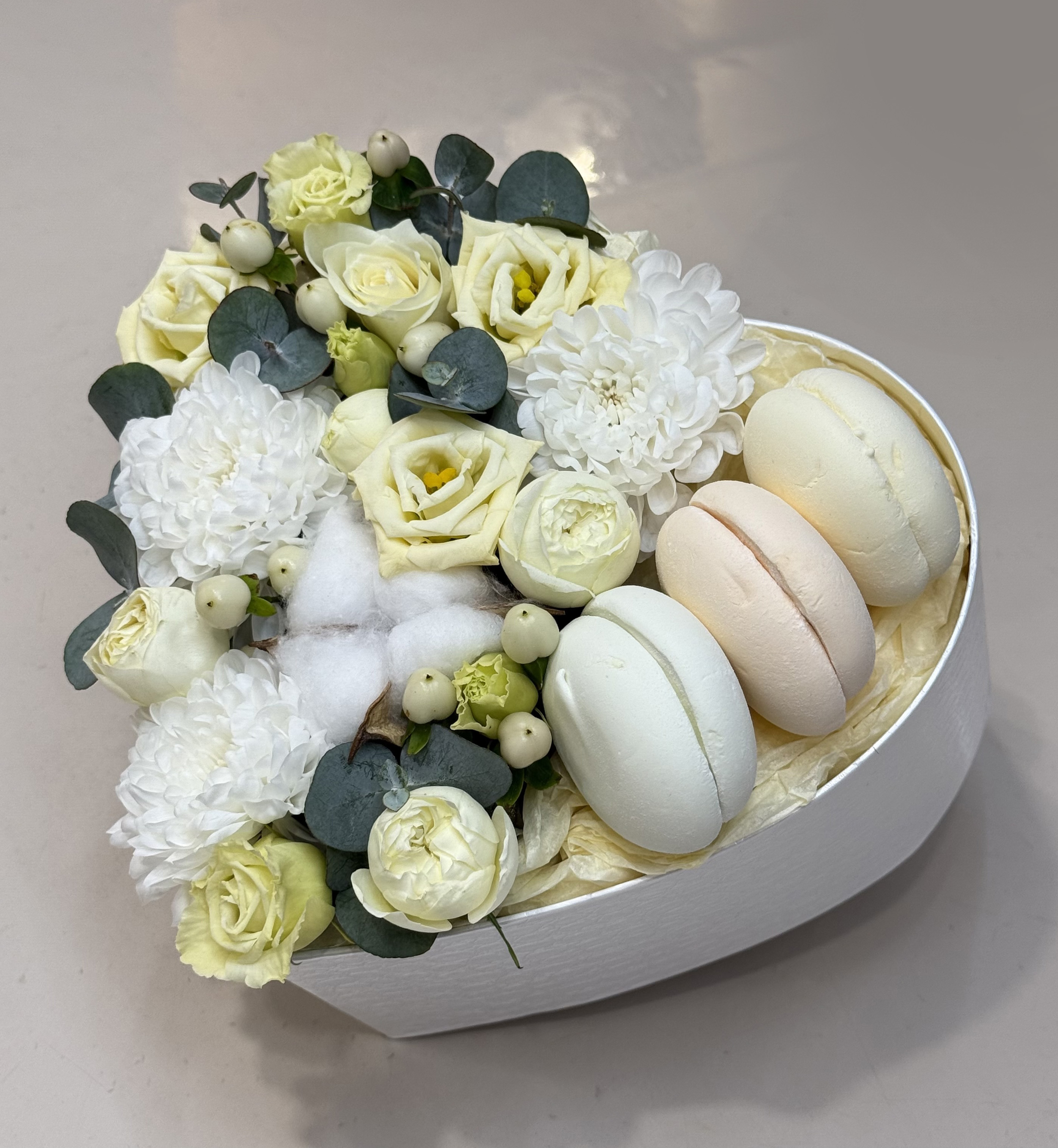 Хризантема, хлопок, кустовая роза, зустома, гиперикум, эквалипт и роза кения.
