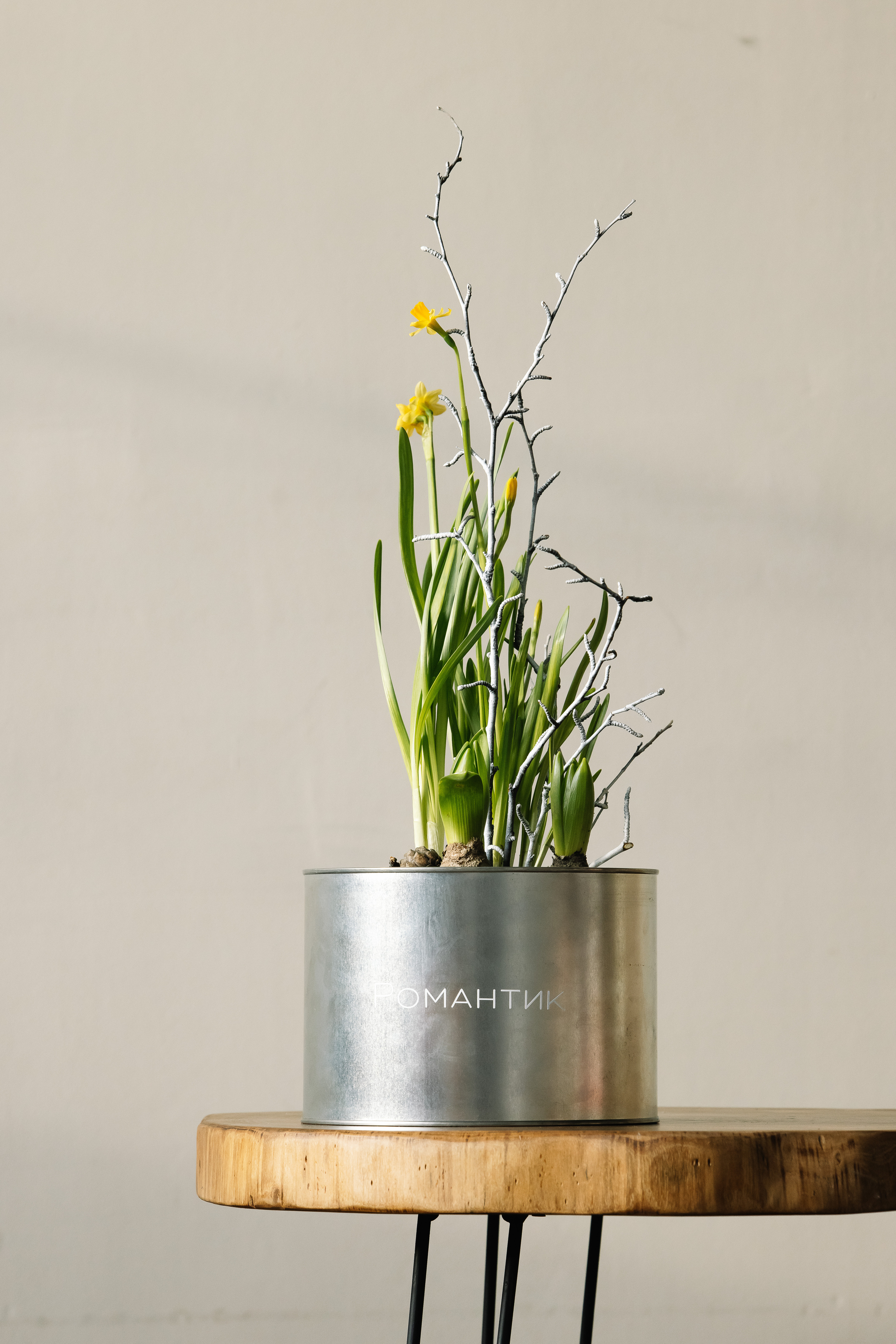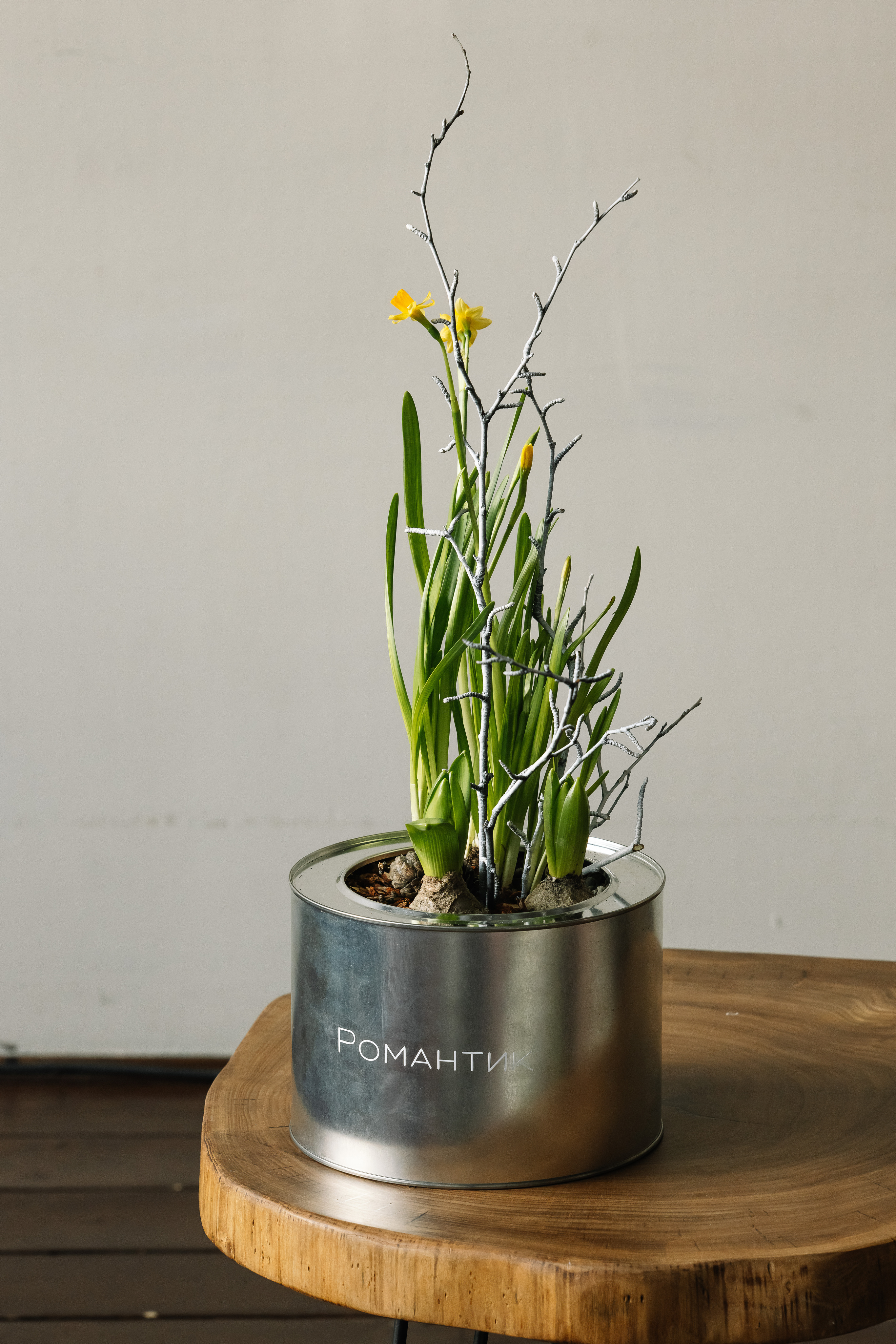 Живая луковичная композиция с нарциссами будет долго радовать весенним настроением.